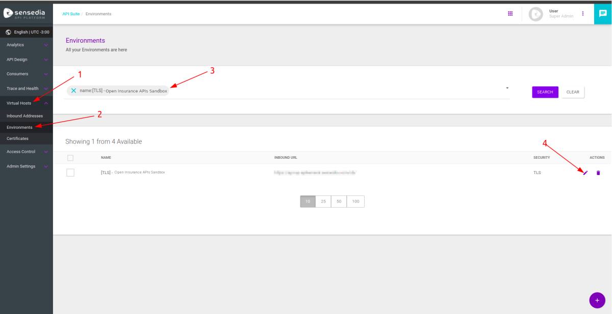 3. Type in the search area the Open Insurance TLS environment;