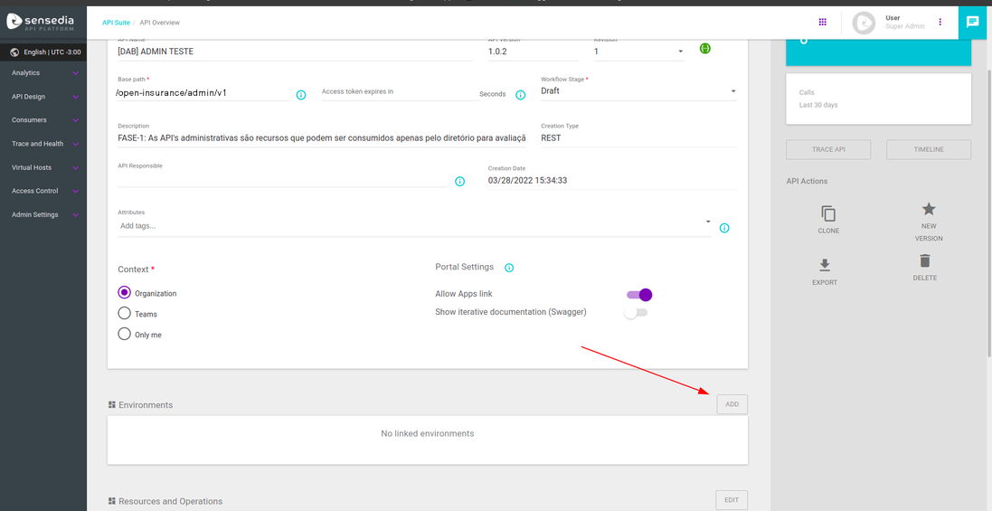 1. Download the Support Services (Outages e Downtimes) API swagger.Save the file with the name: OPIN-Support-Services-addonsensedia.json